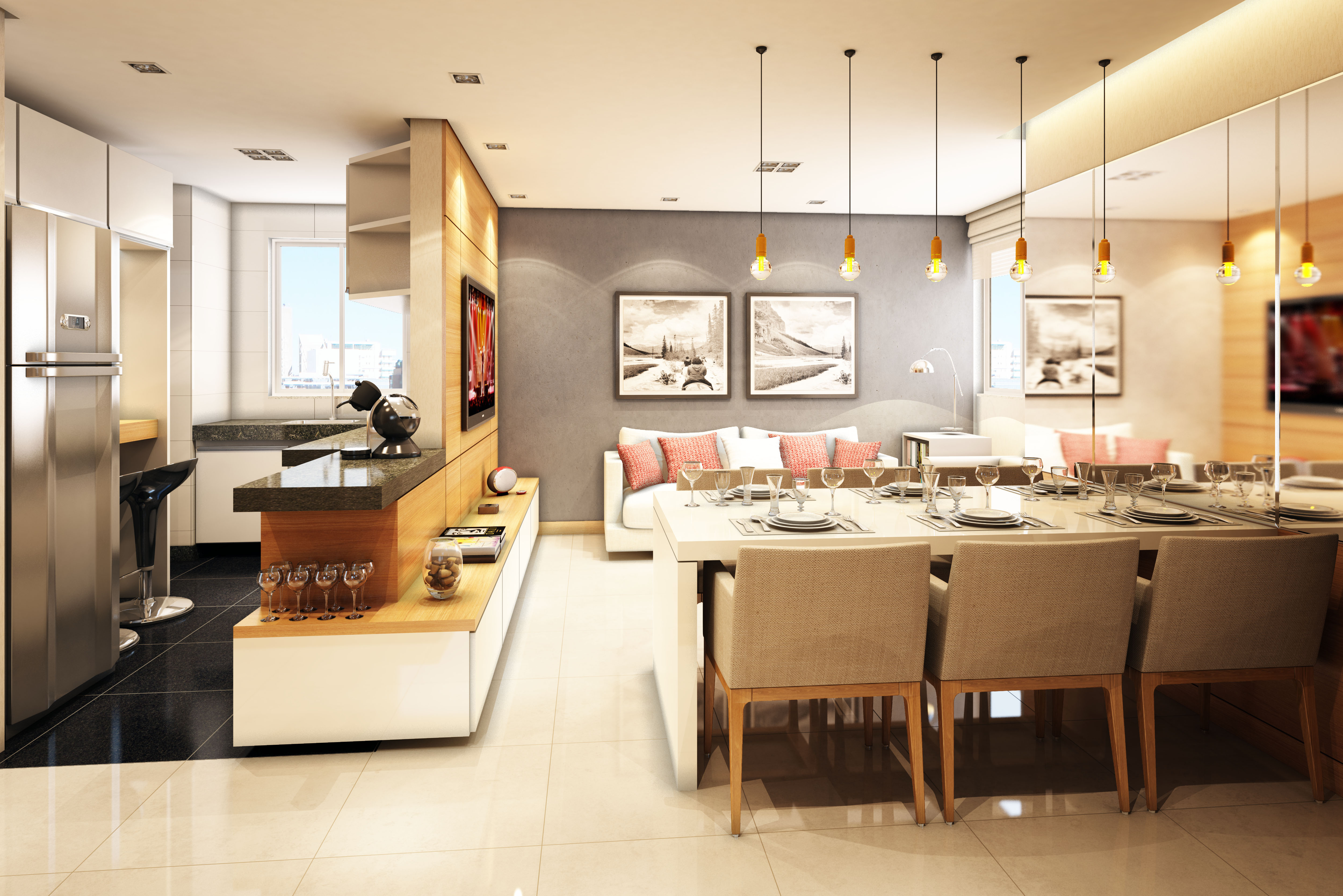 Essa característica define perfeitamente o conceito dos espaços das áreas comuns do empreendimento. A união dos ambientes, aliada à facilidade de manutenção e limpeza, são os principais diferenciais dessas áreas.