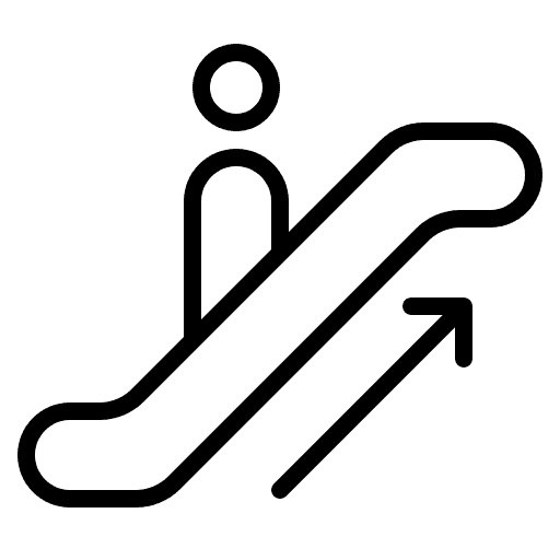 Escadas rolantes e elevadores para acesso a todos os pavimentos