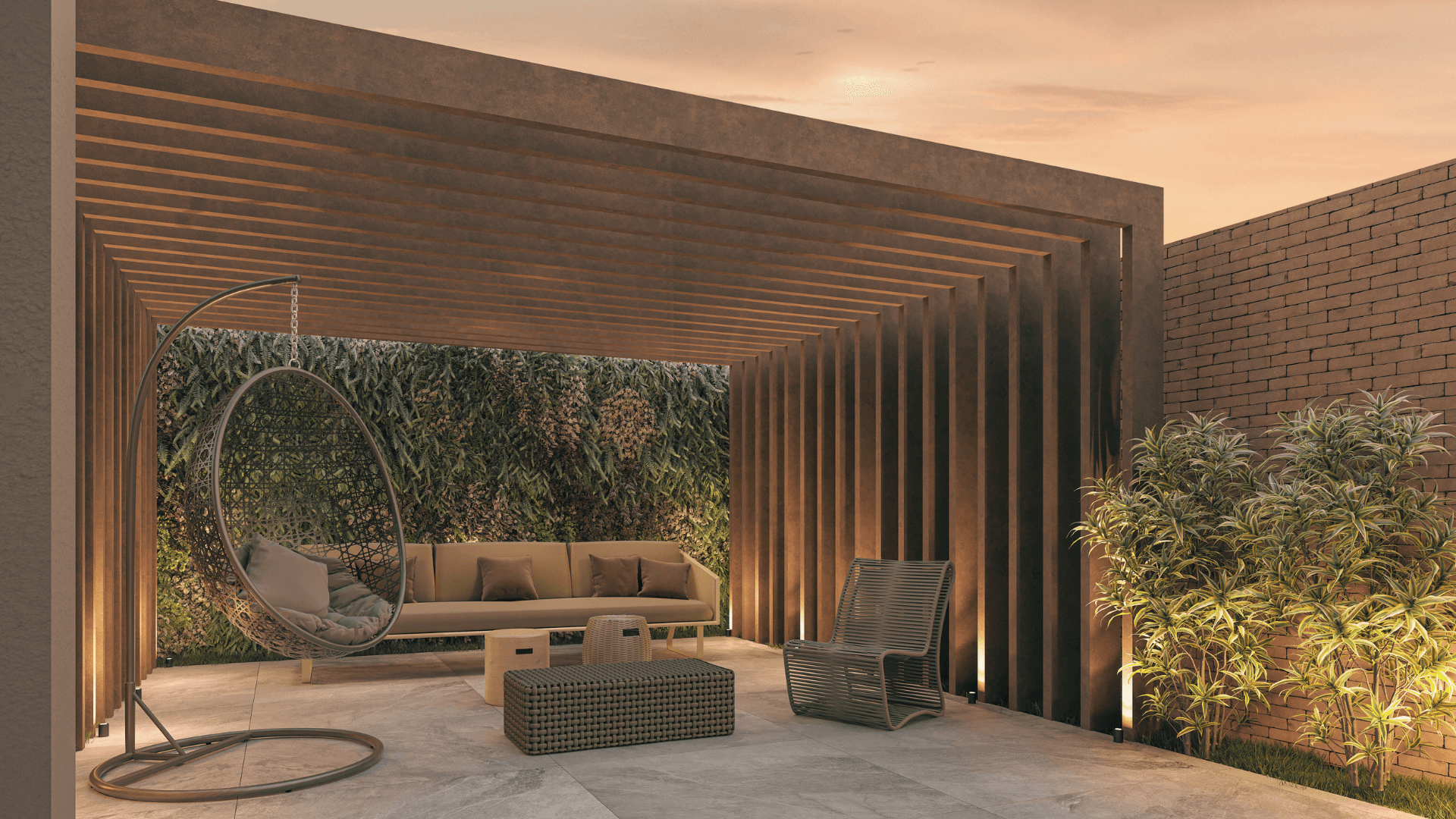 Jardins cuidadosamente idealizados seguindo o conceito do empreendimento e visando uma menor manutenção.