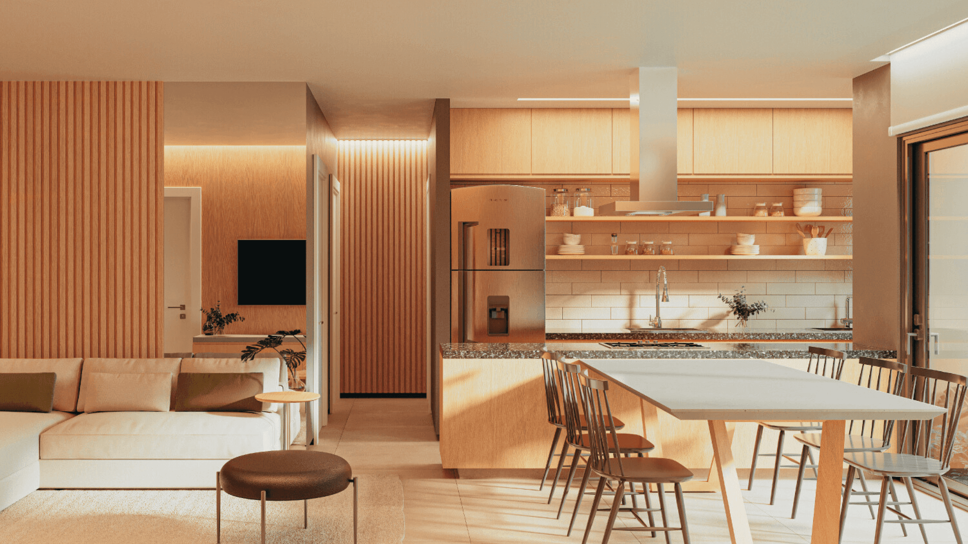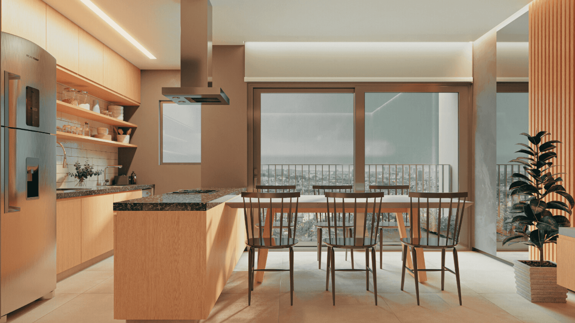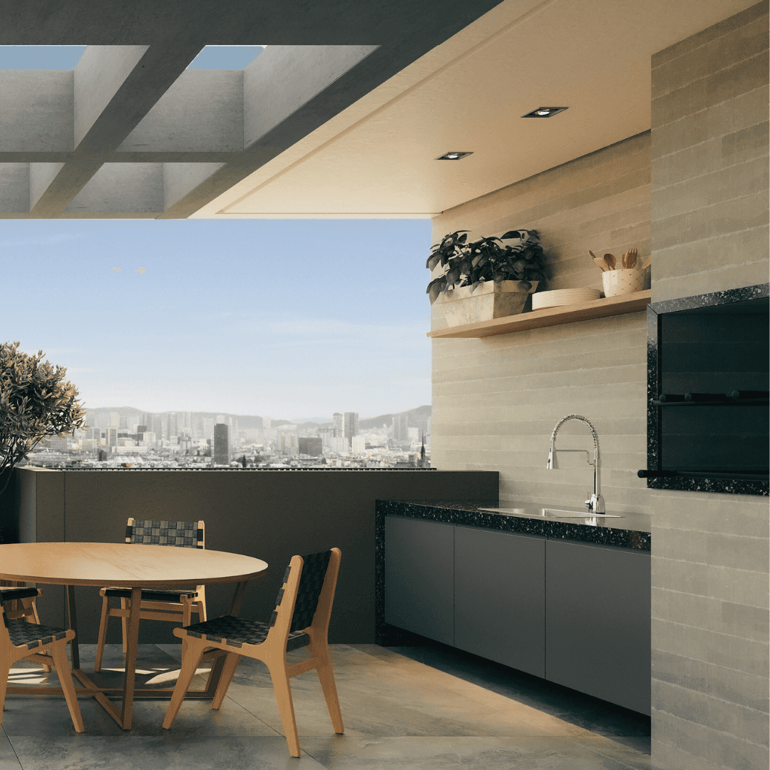Área gourmet com 2 espaços com propostas diferentes e complementares: salão gourmet e parrilla gourmet.