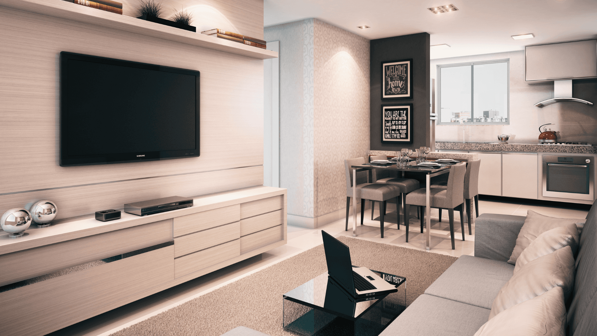 Essa característica define perfeitamente o conceito dos espaços das áreas comuns do empreendimento. A união dos ambientes, aliada à facilidade de manutenção e limpeza, são os principais diferenciais dessas áreas.